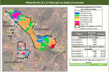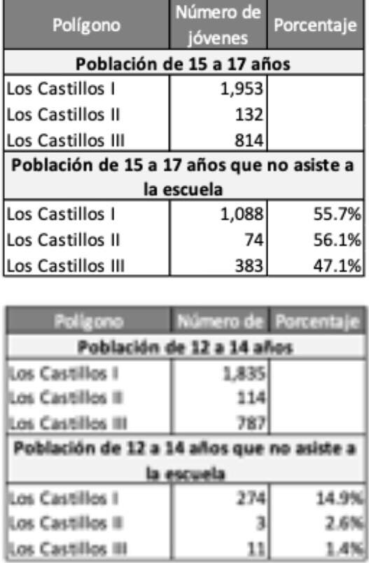 Como se puede observar, los Castillos es una colonia de población particularmente joven que, al no tener acceso a una buena educación, ha experimentado un efecto dominó que, a su vez, ha afectando directamente la seguridad de la zona.